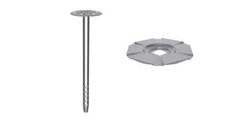Тарельчатый дюбель выполнен из углеродистой стали и защищён стойким антикоррозионным покрытием.
